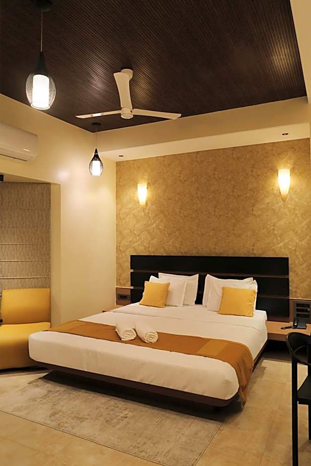 This beautiful, air-conditioned suite features a seating area with a flat-screen TV. It also has a kitchenette and a desk.
